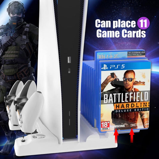 PS5 Cooling Fan Stand, Charger for PS5 Dualsense Wireless Controller, Vertical Stand for PS5 Console, Holder for PS5 Games(Up to 14 Games)