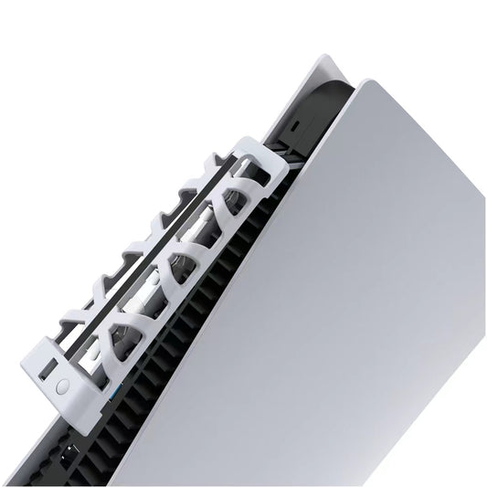 PS5 Stand with Cooling Fan and Controller Charger, Vertical Stand for PS5 Disc & Digital Editions, PS5 Stand with USB Ports and Game Rack - White