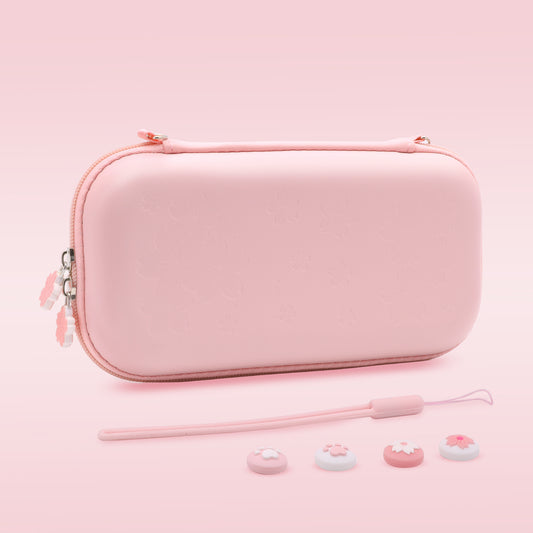 Switch lite Pink Accessories, Sakura Pink Carry Case with Clear Case for Switch lite, Pink Game Case, Coral USB C Cable, Cute Thumb Grips, Screen Protector, Wrist Strap and Shoulder Strap (11 in 1)