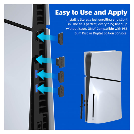 ECHZOVE Dust Cover Net for PS5 Slim Console, Dust Filter for Playstation 5 Slim Disc/Digital Edition, Fitted With Silicone Plugs,Prevent Dust and Pet Hair for PS5 Slim Game Console Accessories
