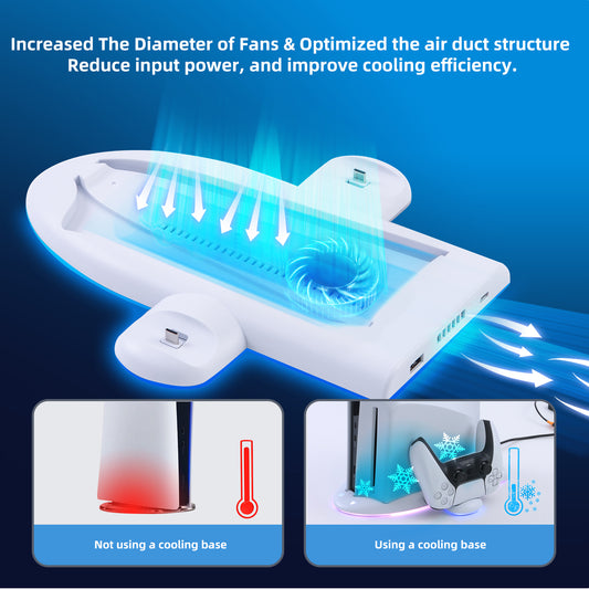 ECHZOVE RGB Cooling Station for New PS5 Slim Console with Controller Charging Dock for Playstation 5 Slim Console, Cooling Stand for PS5 Accessories with Controller Charger, New PS5 Slim Cooling Fan