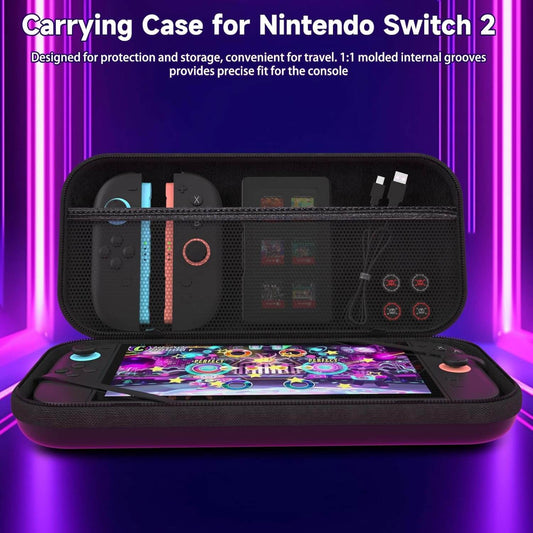 Switch 2 Accessories Bundle - 9-in-1 Carrying Case Kit with Charger Dock, Joy-Con Wheels, Grips, Screen Protector, Protective Cover - Gift Set for Nintendo Switch 2 Console Owners & Mario Kart Fans