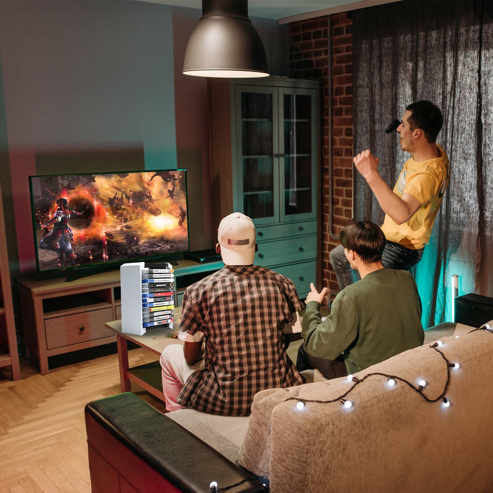 GAMES STORAGE TOWER: This game card storage tower can hold up to 12 game card boxes. This game organizer is compatible with PS5, PS4, PS4 Slim, PS4 Pro, and X-box one games.