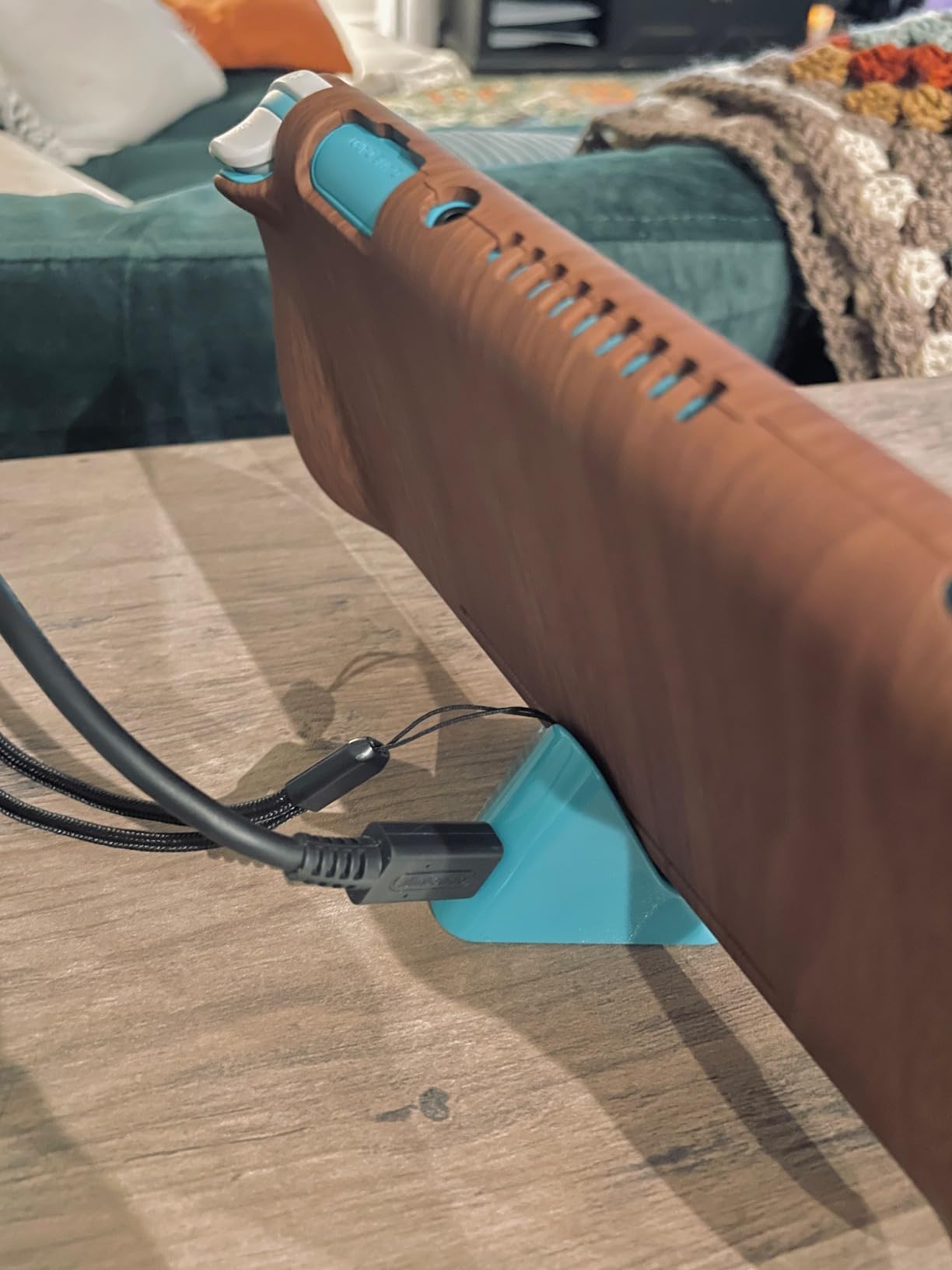 I love this little thing. It displays my switch lite really nicely while charging it. My case is thin and has a charging channel, and fits fine. I haven’t had issues with the usb c, but I am careful and gentle when setting it down or removing it. The non-slip underneath is nice. The turquoise perfectly matches. It has a good weight to it and doesn’t feel overly cheap.