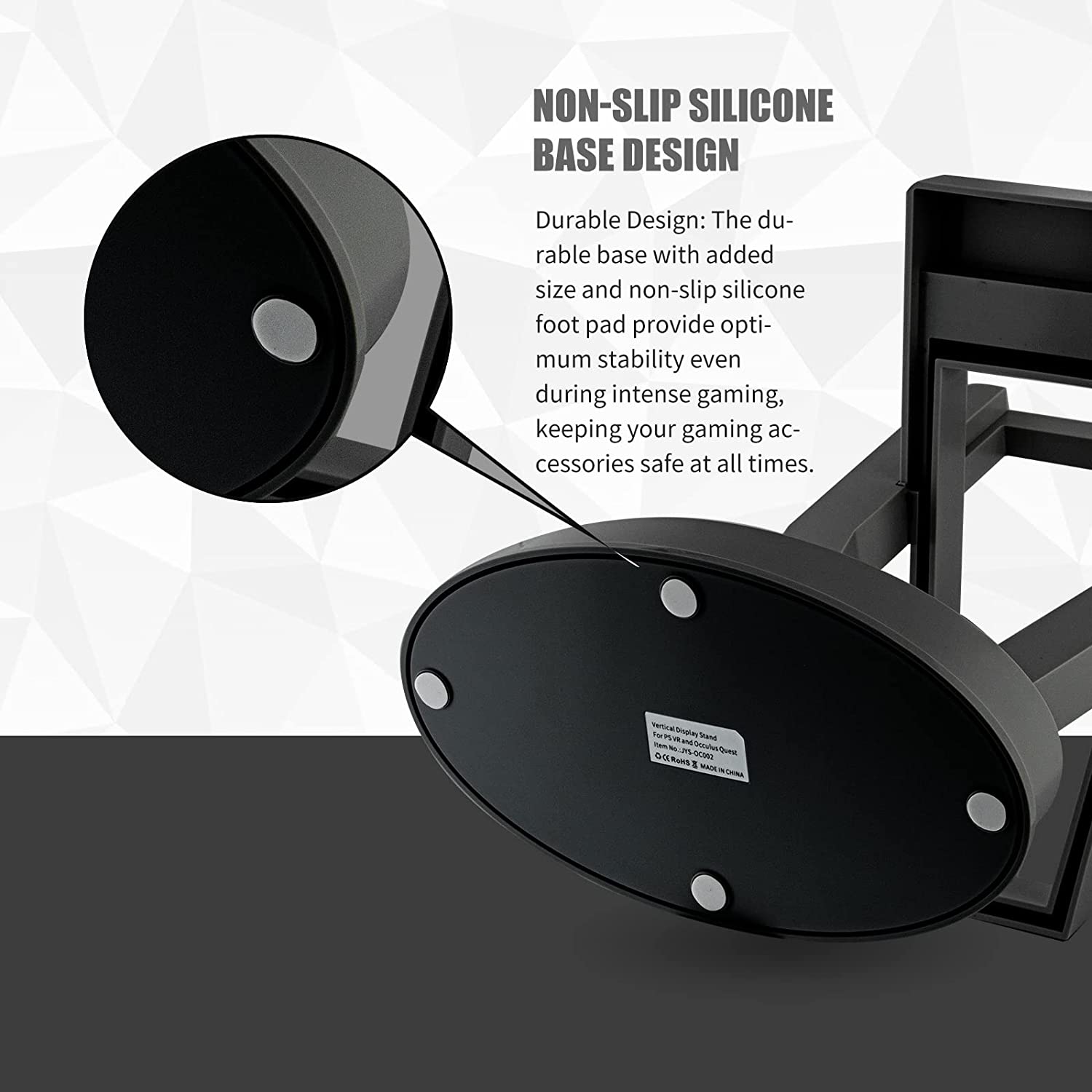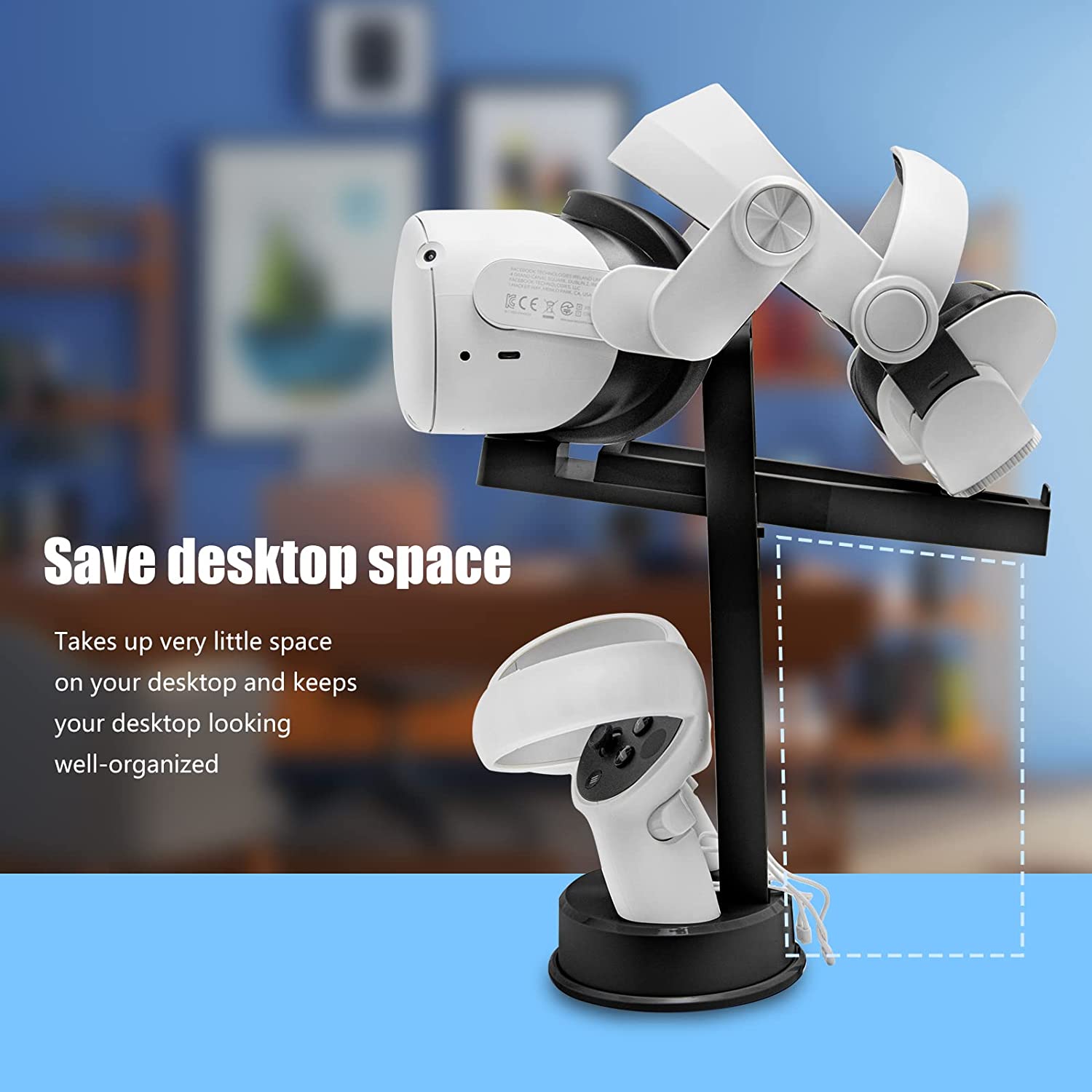 STABLE and NEAT - The Oculus Quest 2 VR stand made of high-quality ABS plastic, with a unique sponge non-slip design and a strong textured round base, it is safe and stable to place your VR headset strap, head-mounted display (HMD), and controllers keep them organized and ready for playing.