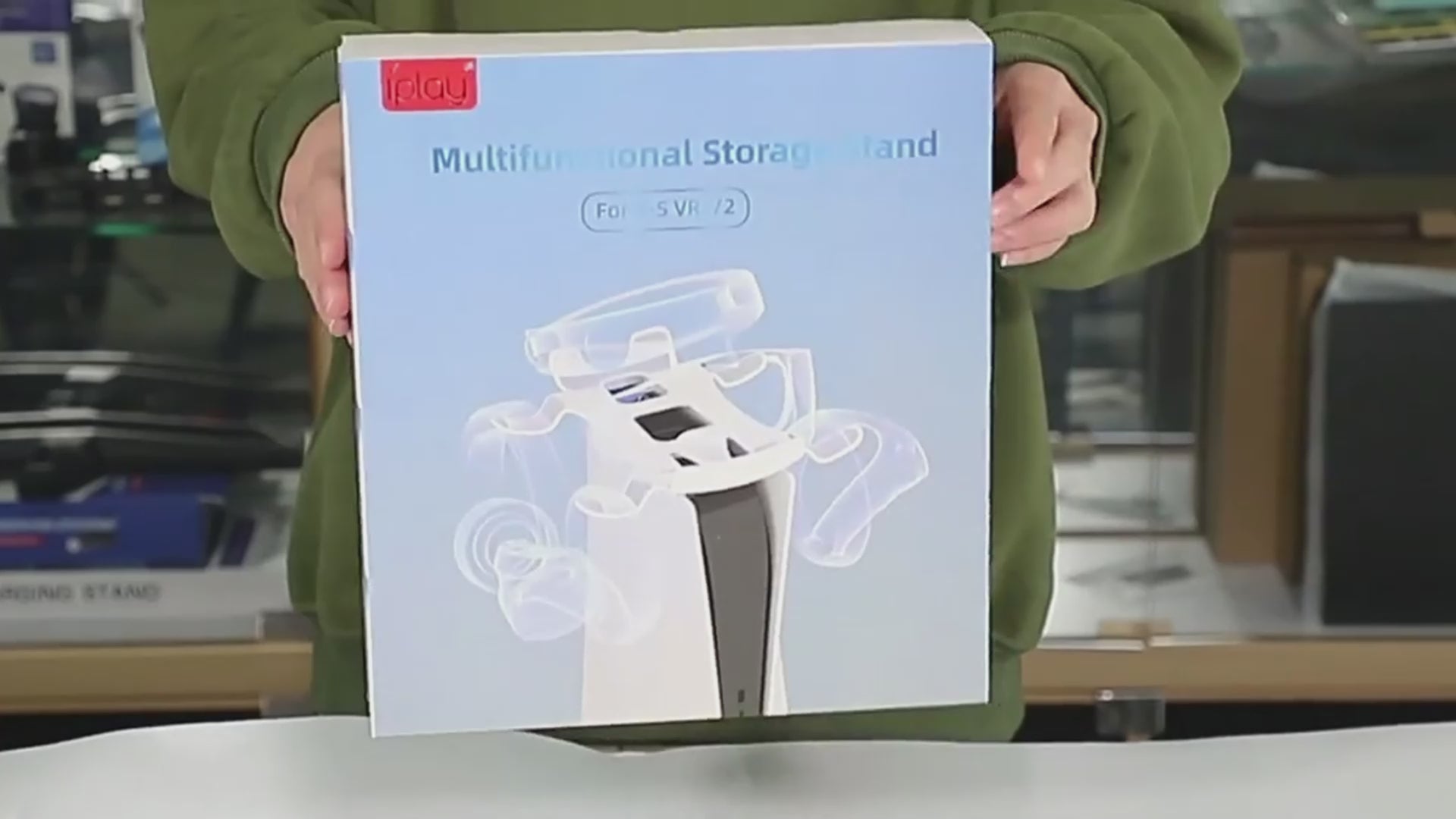 Package includes 1 PS5 VR2 headset holder and 1 PS VR2 Charging cable.