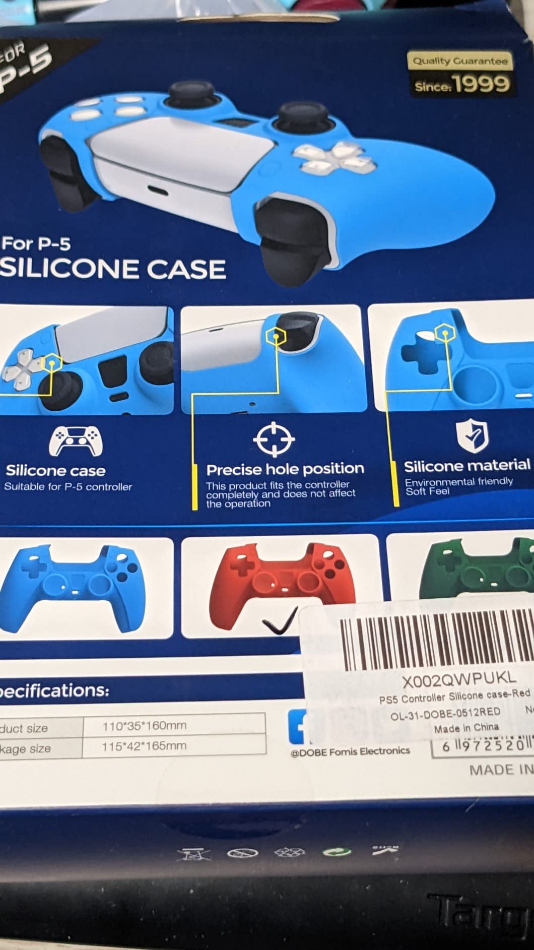 This is a very nice sleeve for the playstation 5 controller. IT fits on snugly but helps with keeping a better grip on your controller which is great since my husband used to drop it all the time. It still fits on chargers fine and does not in any way get over heated. Its silicone feel is soft to the touch but also doesn't slide off tables due to the skin. I wish there were more color choices but for now red and blue isn't horrible. I recommend them I just wish they had a choice to come in a pack of 2. No weird smells and no rough issues, just a great way to prolong your controllers.