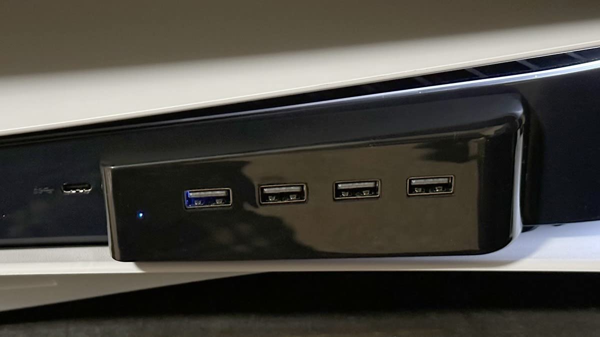 The USB hub up front adds 3 additional USB-A ports without covering up the USB-C one on the left. I will say that with this part, the USB hub is wobbly as it only holds to the PS5 by the USB-A port on the left. But so long as you hold onto it when plugging and unplugging devices, this isn’t a problem.