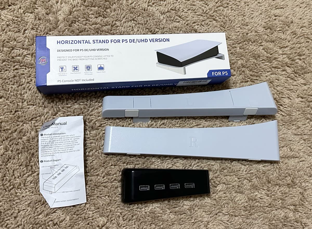 Package includes 1 PS5 horizontal stand and 1 PS5 USB HUB.